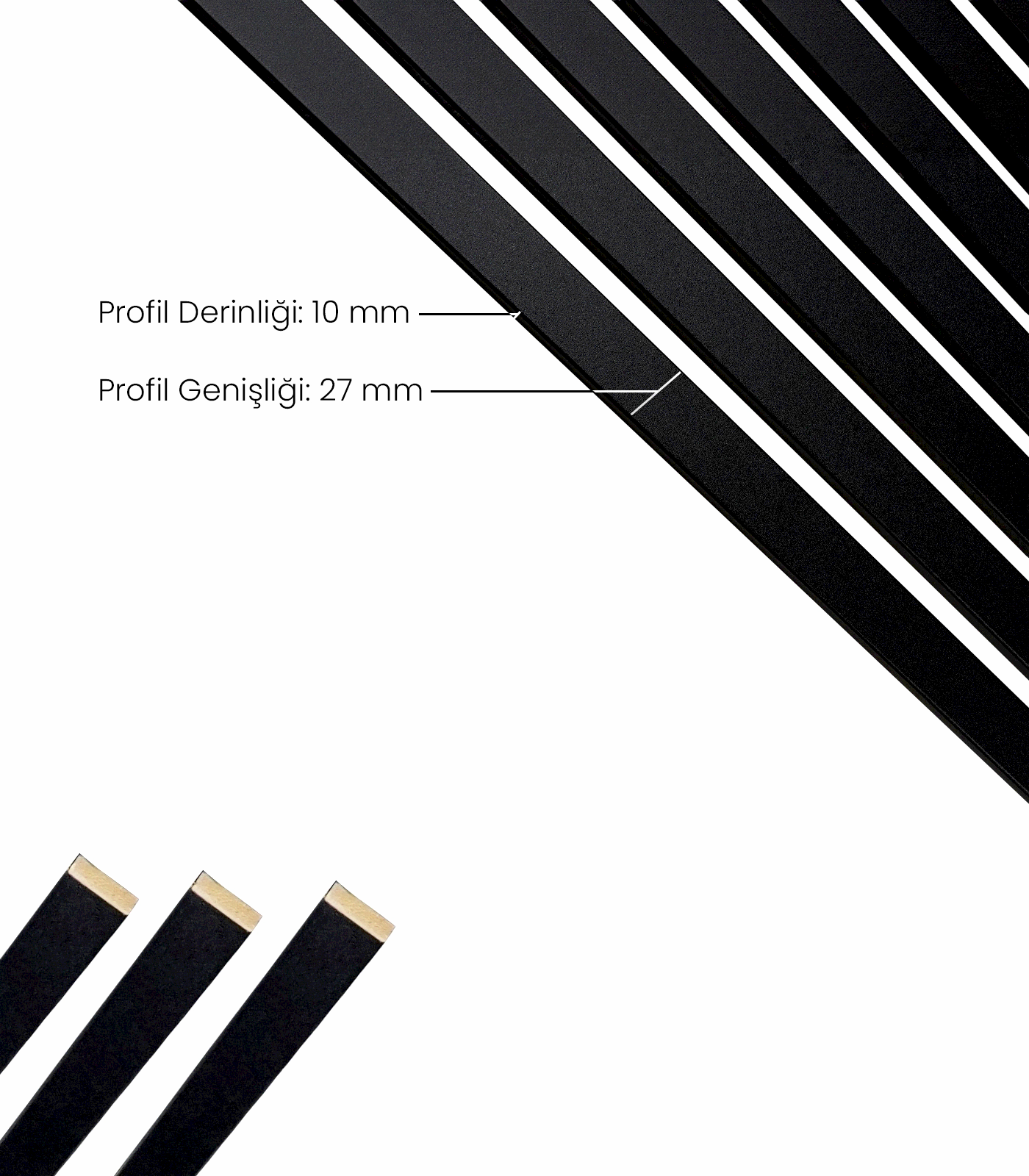 Ahşap profiller, bir inovasyon ürünüdür. Bir profilin ölçüleri 2,7×240 cm’dir. Paket içeriğinde 12 adet ahşap duvar profili bulunmaktadır. Ahşap duvar profillerinin arka yüzeyinde özel olarak üretilmiş yapışkanı bulunmaktadır. Ahşap profilin derinliği 10 mm’dir. Oldukça hafif olup, kendin yap deneyimi ile sadece 3 adımda duvara kolayca montajını yapabilirsiniz.
