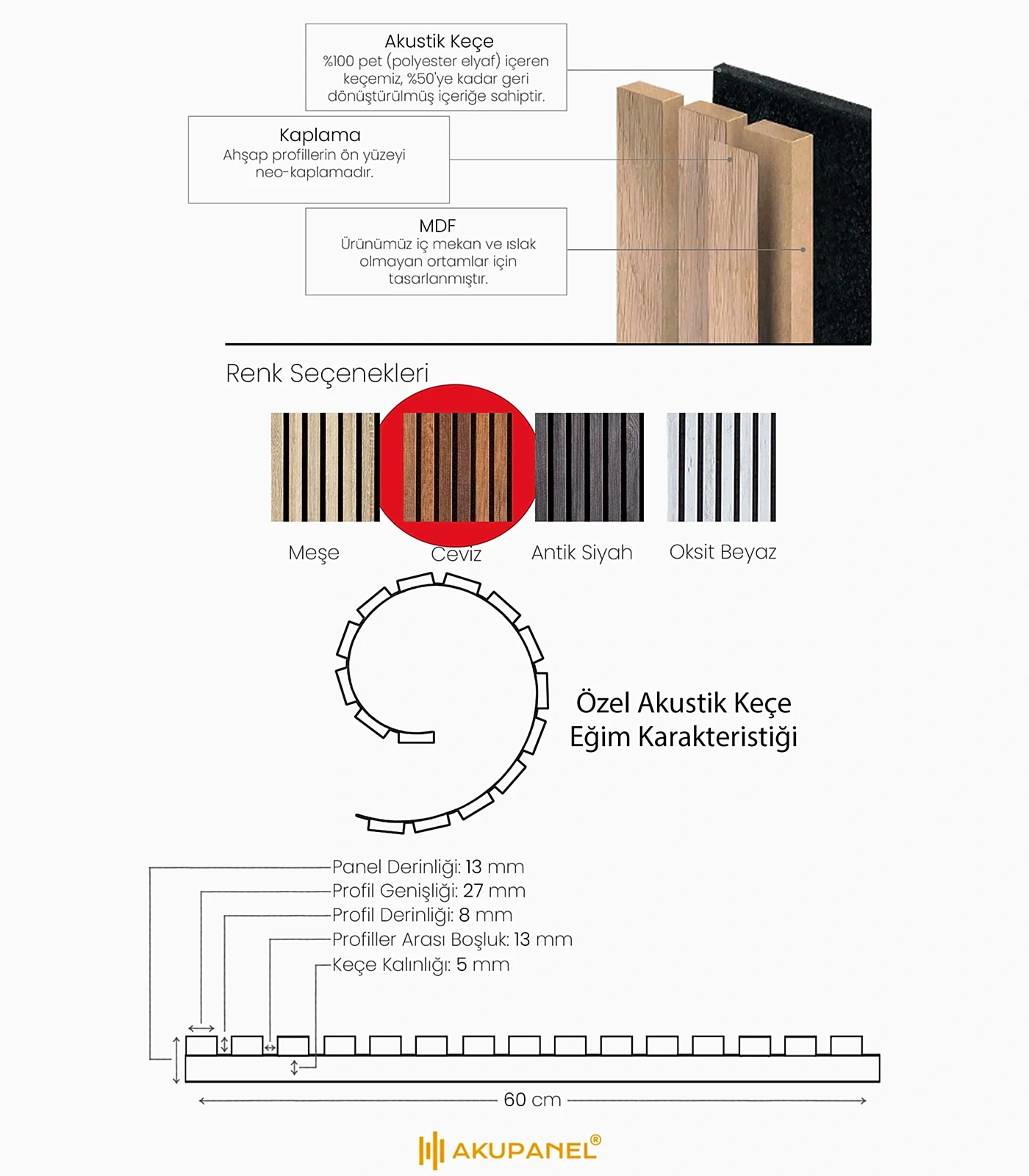 Ceviz Akustik Duvar Paneli , iç mekan dekorasyonunda tercih edilen oldukça şık bir üründür ve Akupanel, odanızdaki gürültü seviyesini düşürmek amacıyla tasarlanmıştır.