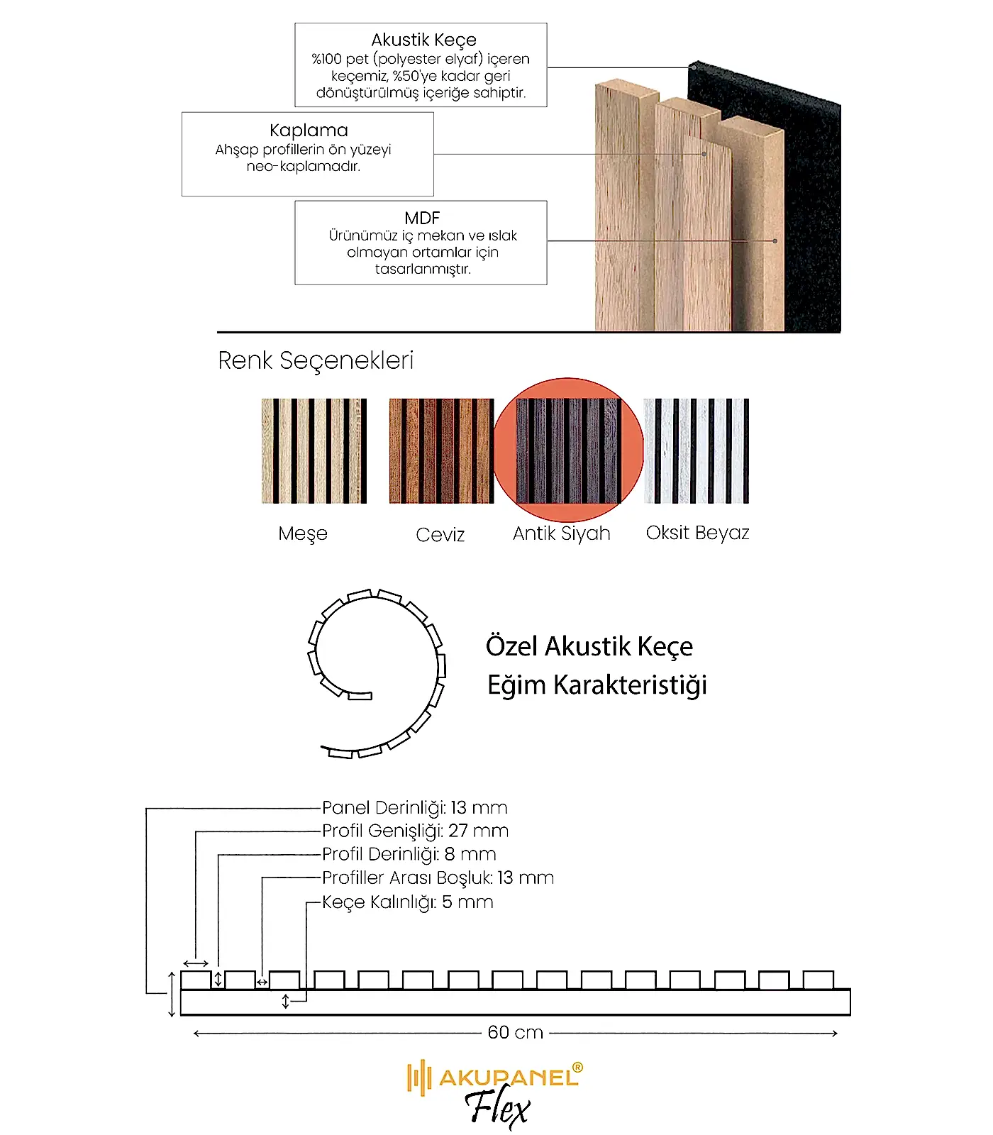 Fakat Siyah Akustik Duvar Paneli yankı oluşumunu engeller çünkü ses dalgaları Akustik panele yani keçeye ve çıtalara çarptığında ses dalgalarını kırar ve panel ses dalgasını emer.
