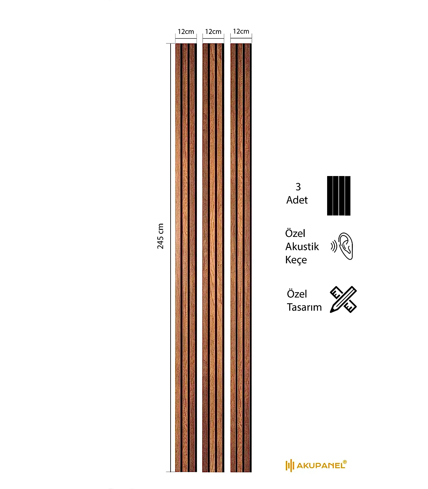 Akupanel MOD 12×245 cm Ceviz Akustik Duvar Paneli (3 Adet)