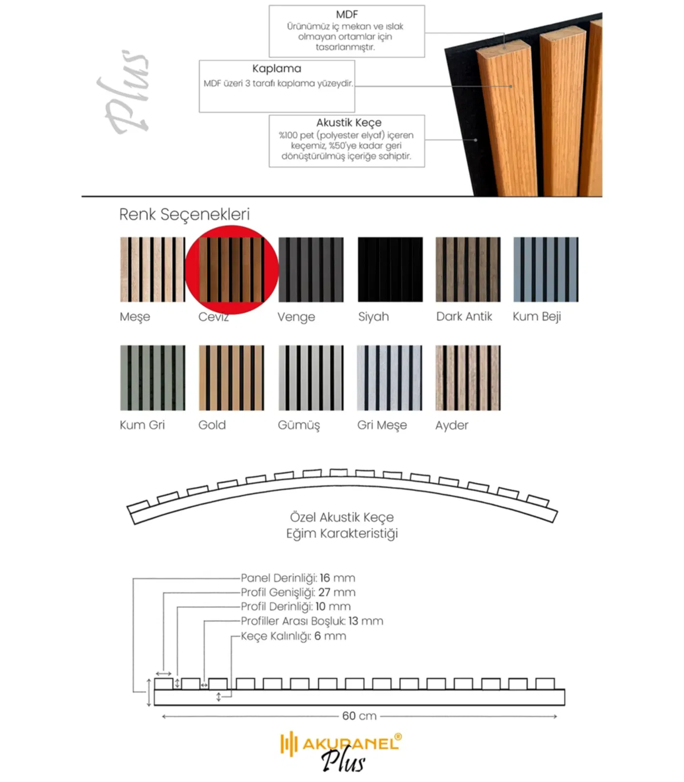 Yeni Akupanel Plus Serisi ile yaşam alanınıza renk katın. MDF üzeri 3 tarafı kaplama yüzeyi ile birlikte plus serisi ile tanışın.
