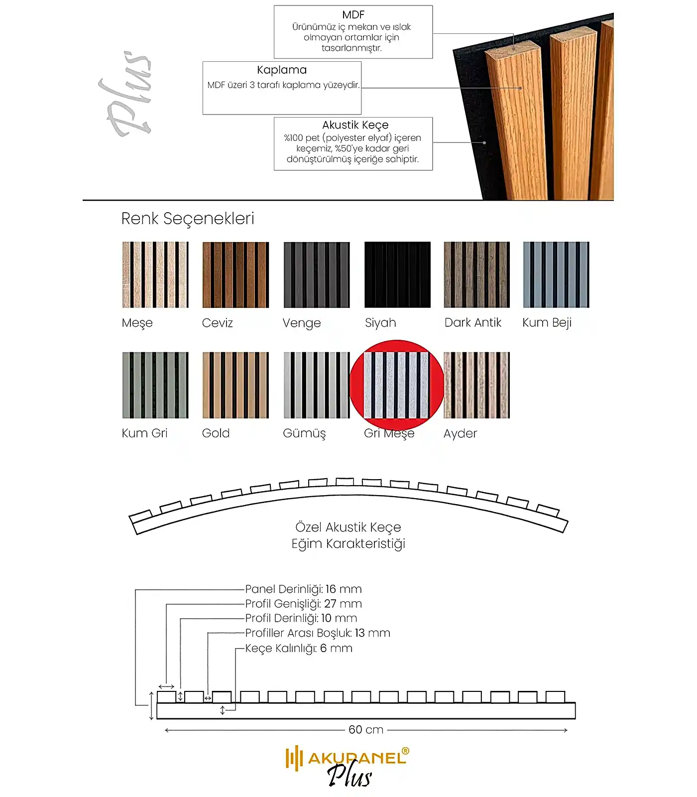 Yeni Akupanel Plus Serisi ile yaşam alanınıza renk katın. MDF üzeri 3 tarafı kaplama yüzeyi ile birlikte plus serisi ile tanışın.