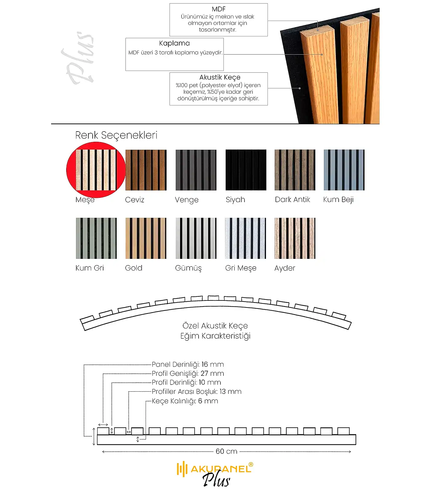 Yeni Akupanel Plus Serisi ile yaşam alanınıza renk katın. MDF üzeri 3 tarafı kaplama yüzeyi ile birlikte plus serisi ile tanışın.